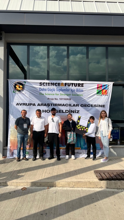 Sakarya Üniversitesi’nin yürütücülüğünü üstlendiği, Avrupa Komisyonu destekli “Science & Future: Daha Güçlü Toplumlar İçin Bilim” projesi kapsamında düzenlenen Avrupa Araştırmacılar Gecesi’ne katıldık. İlimizi temsil eden liseler, BİLSEM ve ortaokullardan oluşan davetli 11 okul arasında yer aldık. Bilişim Teknolojileri Öğretmenimiz Serdar Gökhan Yağcı ve Fen Bilimleri Öğretmenimiz Merve Ertuğrul rehberliğinde öğrenciler tarafından hazırlanan iklim değişikliği projesi yoğun ilgi gördü.